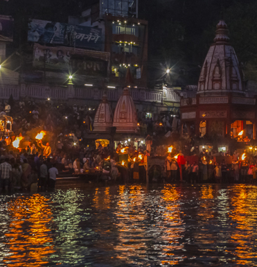 Haridwar is an important pilgrimage city, companioned by river Ganges. The river Ganges after flowing for 253 kilometres from its source at Gaumukh, enters the Indo-Gangetic Plains of North India for the first time at Haridwar, which gave the city its ancient name, GangadwƔra. Haridwar is viewed as one of the seven holiest places to Hindus. Amidst the Kumbha Mela, millions of pilgrims, devotees, and tourists congregate in Haridwar to perform ritualistic bathing on the banks of the river Ganges to wash away their sins. Brahma Kund is located at Har ki Pauri and is considered to be the most sacred ghat of Haridwar.
