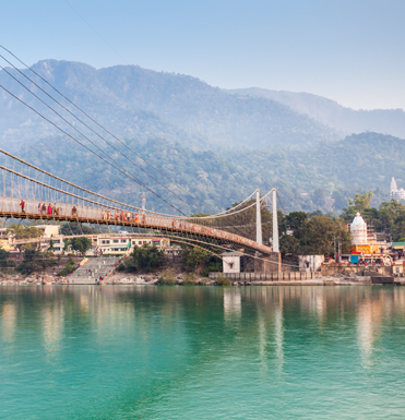 Rishikesh is located in the foothills of the Himalayas and is known as 'The Gateway to the Himalayas'. Rishikesh is located about 25 km north of holy city, Haridwar. Legends state that Lord Rama did penance here for killing Ravana, and Lakshmana, his younger brother, crossed the river Ganges, at a point, where the present 'Lakshman Jhula' bridge stands today. The sacred river Ganges flows through Rishikesh and leaves the Shivalik Mountains in the Himalayas, flowing out into the plains of northern India. Several temples, ancient with new are found along the banks of the Ganges in Rishikesh.